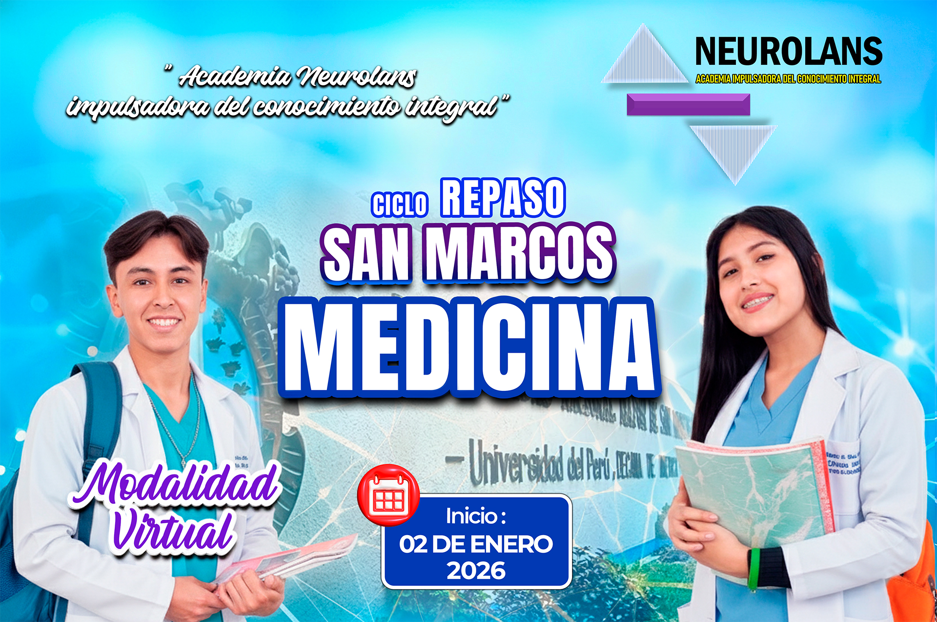 Neurolans es una academia preuniversitaria enfocada en la preparación de estudiantes para el ingreso a universidades exigentes (San Marcos, UNI, Villarreal, UNSA). Su modelo de negocio destaca un fuerte componente digital: ofrecen un “Aula Virtual”, “Simulacros Online” y “Clases grabadas en Zoom”.